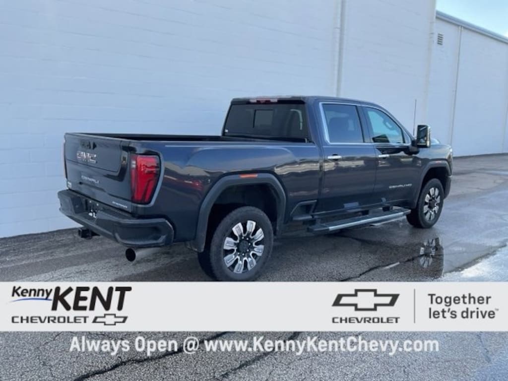 Titanium Rush Metallic 2024 GMC Sierra 2500HD Denali 4WD Sierra 2500HD Denali, 4D Crew Cab, Duramax 6.6L V8 Turbodiesel, 10-Speed Automatic, 4WD, Titanium Rush Metallic, Jet Black Leather.CARFAX One-Owner. Clean CARFAX.Recent Arrival! Odometer is 18062 miles below market average!Certified.GMC Certified Pre-Owned Details:* Vehicle History* Warranty Deductible: $0* 172 Point Inspection* Limited Warranty: 12 Month/12,000 Mile (whichever comes first) from certified purchase date* Roadside Assistance* Transferable Warranty* Powertrain Limited Warranty: 72 Month/100,000 Mile (whichever comes first) from original in-service date* 24 months/24,000 miles (whichever comes first) Certified Pre-Owned Scheduled Maintenance Plan and 3 days/150 miles (whichever comes first) Vehicle Exchange Program. SiriusXM 3-month trial subscriptionWe want you to shop With-confidence for your next used Vehicle at Kenny Kent Chevrolet. This pre-owned vehicle was put through an extensive inspection with Master technician's before being offered for sale. We offer Nationwide Shipping ask one of our Associates for A Free Quote. Is financing important to your buying decision? Good, bad or no credit? No matter! Kenny Kent Chevrolet has a full arsenal of over 50 banks providing multiple lending options, to help you decide the payment that fits your budget and needs. We'll save you money at every turn and earn your business for years to come. Your satisfaction is our TOP priority. Please ask us about the remaining Factory Warranty so you can confidently know if you are covered by the Manufacturer if not Don't Worry!!! We offer Protection from MPP Service Contract's on all of our vehicles we sell. Kenny Kent Chevrolet has the best price and value combination in the marketplace. And best of all, you'll love your purchase experience as we are a Lifetime Carfax Certified Dealer. See additional info and our full inventory at KennyKentChevy.com. Come find out why people have been buying their vehicles from Kenny Kent Chevrolet for over 85 years. Kenny Kent Chevrolet is located right off the Lloyd Expressway in Evansville Indiana that's Right up the Road from Everywhere.We are Within 5 Miles from Evansville Regional Airport and offer a Free Shuttle to the dealership for convenience for out of town customers.
