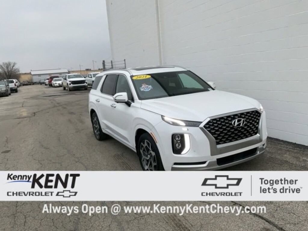 Hyper White 2021 Hyundai Palisade Calligraphy AWD Palisade Calligraphy, 4D Sport Utility, V6, 8-Speed Automatic with SHIFTRONIC, AWD, Hyper White, Black Leather.CARFAX One-Owner.Recent Arrival! Odometer is 28249 miles below market average!We want you to shop With-confidence for your next used Vehicle at Kenny Kent Chevrolet. This pre-owned vehicle was put through an extensive inspection with Master technician's before being offered for sale. We offer Nationwide Shipping ask one of our Associates for A Free Quote. Is financing important to your buying decision? Good, bad or no credit? No matter! Kenny Kent Chevrolet has a full arsenal of over 50 banks providing multiple lending options, to help you decide the payment that fits your budget and needs. We'll save you money at every turn and earn your business for years to come. Your satisfaction is our TOP priority. Please ask us about the remaining Factory Warranty so you can confidently know if you are covered by the Manufacturer if not Don't Worry!!! We offer Protection from MPP Service Contract's on all of our vehicles we sell. Kenny Kent Chevrolet has the best price and value combination in the marketplace. And best of all, you'll love your purchase experience as we are a Lifetime Carfax Certified Dealer. See additional info and our full inventory at KennyKentChevy.com. Come find out why people have been buying their vehicles from Kenny Kent Chevrolet for over 85 years. Kenny Kent Chevrolet is located right off the Lloyd Expressway in Evansville Indiana that's Right up the Road from Everywhere.We are Within 5 Miles from Evansville Regional Airport and offer a Free Shuttle to the dealership for convenience for out of town customers.