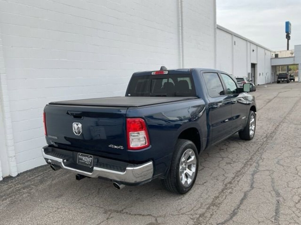Experience the power and versatility of the 2021 Ram 1500 Big Horn/Lone Star in striking Patriot Blue Pearlcoat, designed for drivers who demand capability and comfort in every journey.This Ram 1500 is powered by a robust 5.7L HEMI V8 with Multi Displacement VVT, delivering impressive towing capacity and confident acceleration. The 8-speed automatic transmission and four-wheel drive system ensure smooth handling and control across all terrains, whether you're navigating city streets or rugged trails. Inside, the crew cab offers spacious seating with durable cloth upholstery and a convenient pass-through rear seat, perfect for hauling gear or passengers with ease. Safety is paramount, featuring advanced stability and traction control, multiple airbags, brake assist, and a tire pressure monitoring system to keep you secure on every drive. The back-up camera enhances visibility when reversing, while heated mirrors and fog lamps improve driving confidence in challenging weather. Keyless entry and start add convenience, complemented by Bluetooth connectivity and steering wheel audio controls for seamless access to your favorite media. Equipped with a tow hitch and conventional spare tire, this Ram 1500 is ready for work or weekend adventures, making it the ideal truck for those who need power, reliability, and thoughtful features in one rugged package.Be sure to call or visit Kenny Kent Chevrolet to discover more. Your new favorite vehicle awaits - don't let someone else drive it home!?